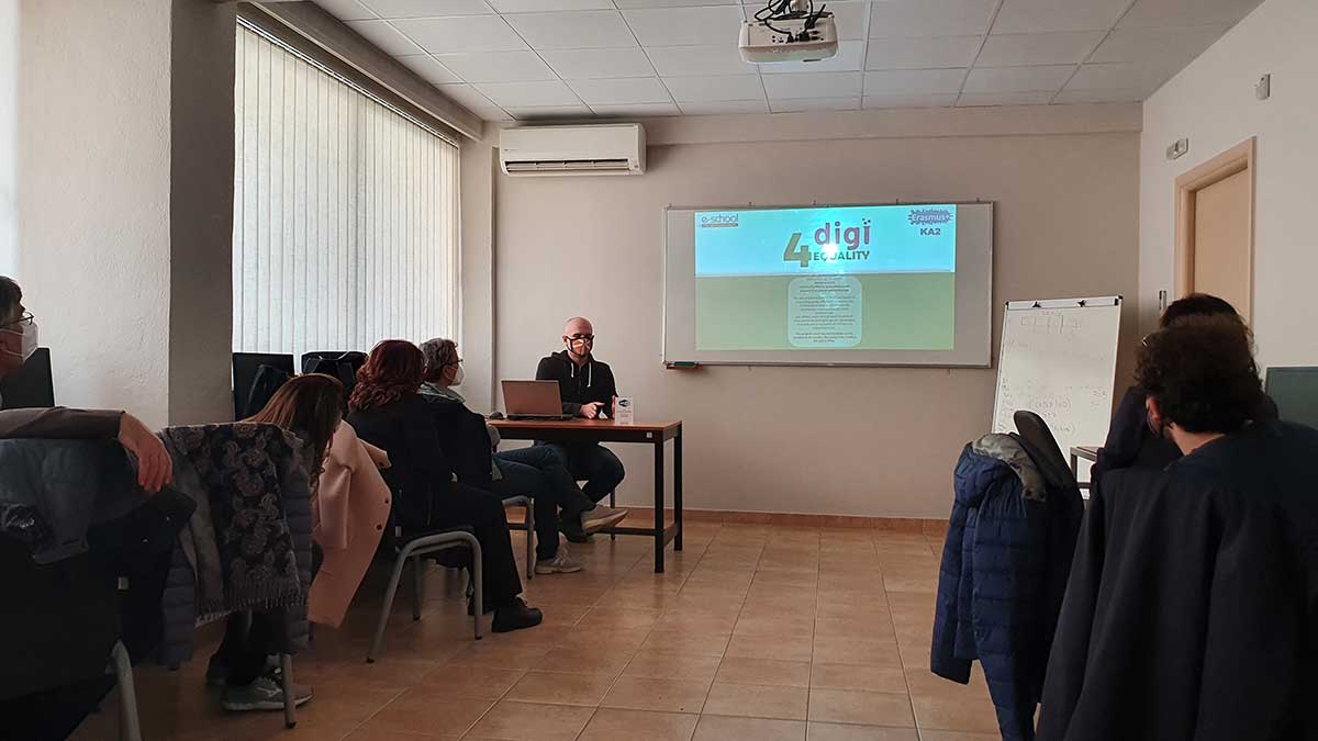 On October 29, 2021 the Digi4Equality project was promoted to teachers from the school “EINSTEIN – DE LORENZO” located in Potenza, Italy, who attended a Game Based Learning training course at E-SCHOOLs’ premises in the framework of Erasmus+ programme (for teacher mobility under KA1).